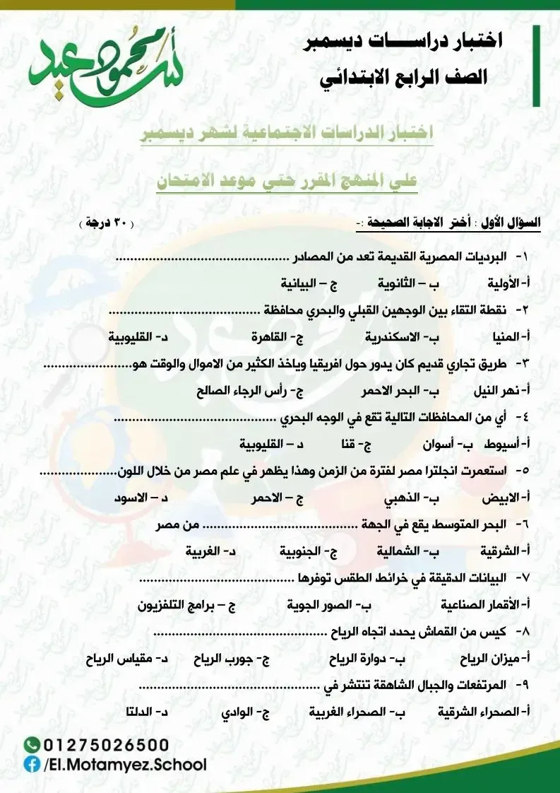 أفضل وأقوى مراجعة نهائية فى الدراسات الإجتماعية للصف الرابع الابتدائي ترم اول