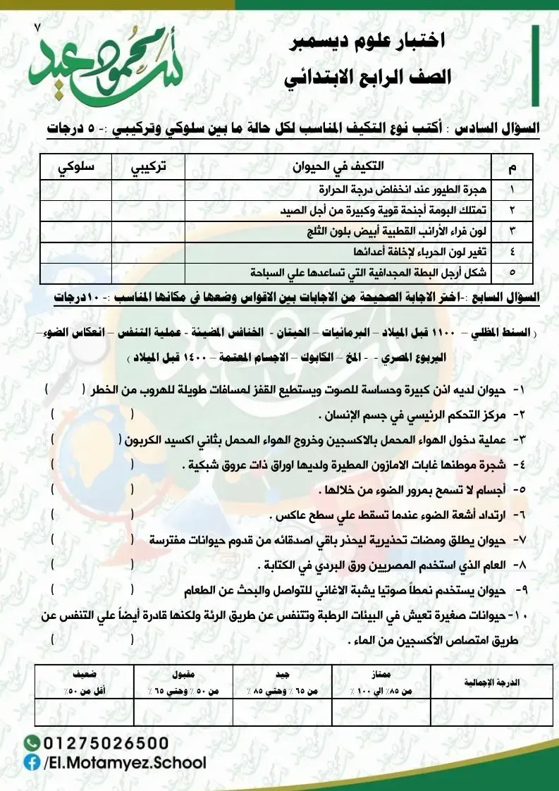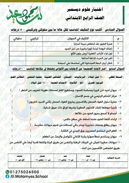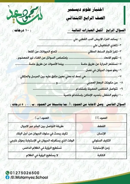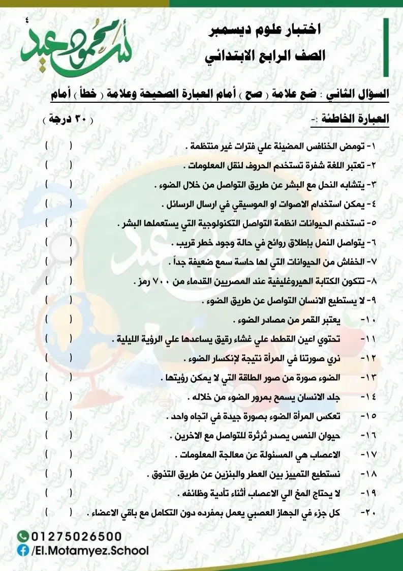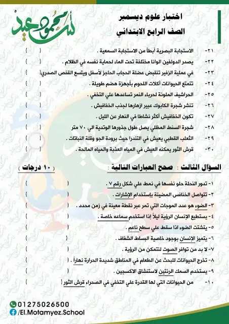 أفضل وأقوى مراجعة نهائية فى العلوم للصف الرابع الابتدائي ترم اول