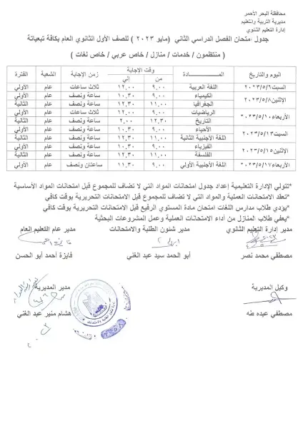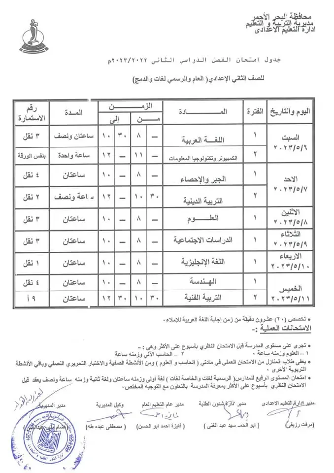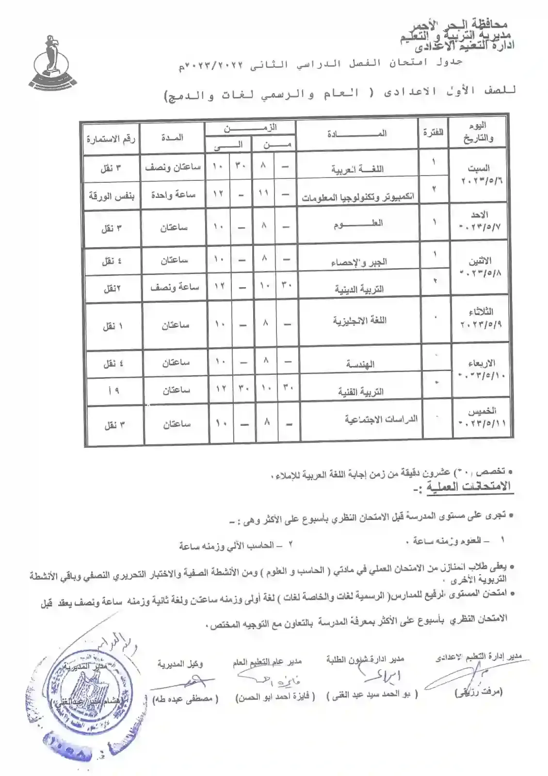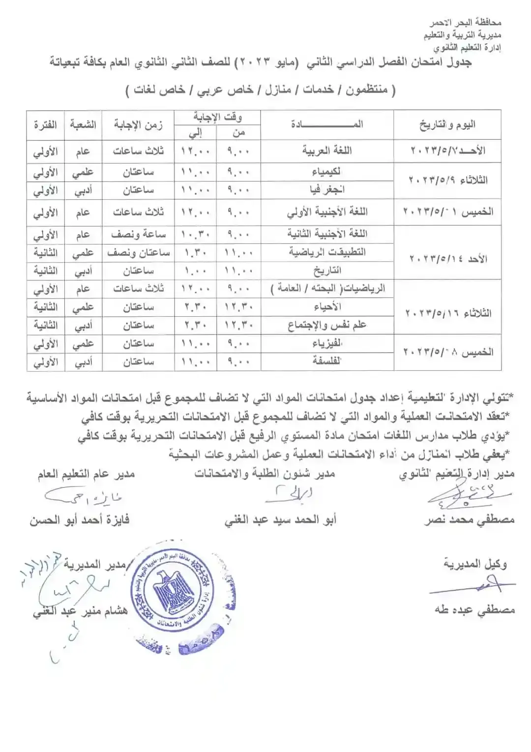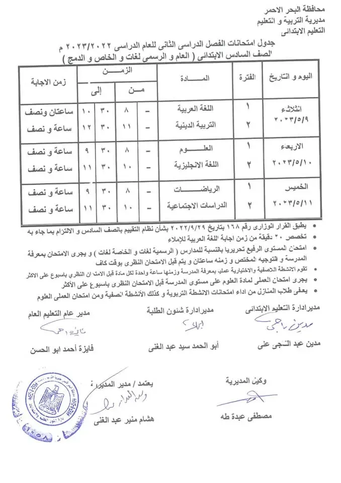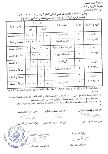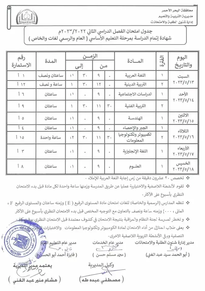 يهتم العديد من طلاب صفوف الابتدائي والإعدادي والثانوي بالمراحل الدراسية المختلفة في محافظة البحر الأحمر بالتعرف على جداول امتحانات الترم التانى للعام الدراسي 2023.