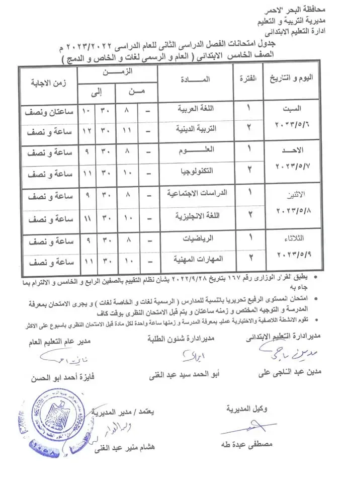 جدول امتحانات الفصل الدراسي التانى 2023 في البحر الأحمر تم إعلانه الآن من جانب مديرية التربية والتعليم في البحر الأحمر لجميع الصفوف الدراسية.